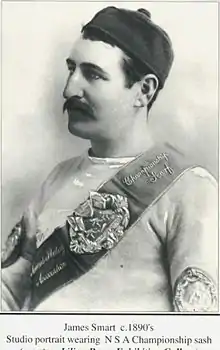 James Smart (1865–1928) was the youngest brother of Fish and Jarman Smart. Unlike his brother Fish and uncle Turkey he always skated under his real name; attempts to call him Eagle to distinguish him from his cousin James Turkey Smart did not stick. He won the professional title of Great Britain in 1890, 1895 and 1900 and the Littleport Cup in 1892. He also won a world championship and a Dutch championship. He was sponsored allowing him to train.[67] Having spent some time training in Norway, he set up an agency to sell Norwegian skates in Britain.