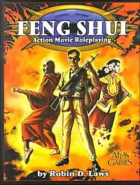 Feng Shui is a martial arts-themed role-playing game, designed by Robin Laws, published first by Daedalus Entertainment and now by Atlas Games. The game shares its setting with the collectible card game Shadowfist. The system is simple, with most detail being in the game's combat system. Combat is made to flow quickly, moving from one action scene to another very quickly. It was inspired and based on Hong Kong style action movies.[2] The characters begin at a high level of skill, as appropriate for protagonists in the source films.