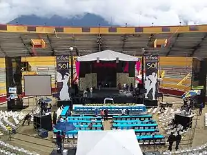 Feria del Sol (English: Fair of The Sun), or Carnaval Taurino de America (English: Bullfighting carnival of America), is an international cultural festival held in the city of Mérida, Venezuela every February of the year. The Feria festival is held alongside the carnival feast. The festival includes bull competitions, cultural expositions, commercial and zootechnic expositions, concerts, parades, sports, and a voting competition for La Reina Del Sol (English: The Queen of The Sun).[1]