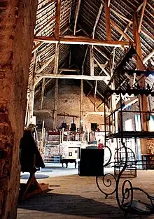 In the early nineteenth century, the farm, despite its large size, proved too small and required extension. More space was created in the barn by the building of another floor. In addition, the east wing was doubled in width, beyond the wall, along its entire length - except at the location of a small graveyard. The farm was permanently isolated from the forecourt of the castle by a wall and a half turret built at the end of the west wing.