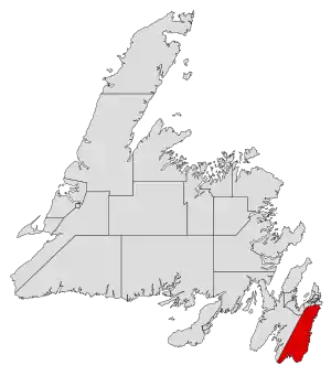 | Census subdivision(s) | Aquaforte, Bay Bulls, Cape Broyle, Fermeuse, Ferryland, Petty Harbour–Maddox Cove, Port Kirwan, Portugal Cove South, Renews–Cappahayden, St. John's (part), St. Shott's, Trepassey, Witless Bay, Division No. 1, Subd. D, Division No. 1, Subd. U, Division No. 1, Subd. V | ||