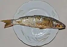 Fesikh (Egyptian Arabic: فسيخ fesīḵ pronounced [fɪˈsiːx]) is a traditional celebratory ancient Egyptian dish. It is eaten by Egyptians during the Sham el-Nessim festival in Egypt, which is a spring celebration from ancient Egyptian times and is a national festival in Egypt. Fesikh consists of salted pickled fermented and dried gray Mullet (fish) of the genus Mugil, a saltwater fish that lives in both the Mediterranean and the Red Seas.[1]
