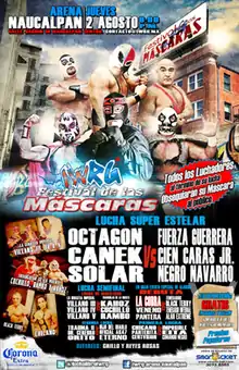 The wrestling mask has always held a sacred place in lucha libre, carrying with it a mystique and anonymity beyond what it means to wrestlers elsewhere in the world.[2] The ultimate humiliation a luchador can suffer is to lose a Lucha de Apuestas, or bet match. Following a loss in a Lucha de Apuesta match the masked wrestler would be forced to unmask, state their real name and then would be unable to wear that mask while wrestling anywhere in Mexico.[3] Since 2007 the Mexican wrestling promotion International Wrestling Revolution Group (IWRG; Sometimes referred to as Grupo Internacional Revolución in Spanish) has held a special annual show where they received a waiver to the rule from the State of Mexico Wrestling Commission and wrestlers would be allowed to wear the mask they previously lost in a Lucha de Apuestas. The annual Festival de las Máscaras ("Festival of the Masks") event is also partly a celebration or homage of lucha libre history with IWRG honoring wrestlers of the past. The IWRG's Festival de las Máscaras shows, as well as the majority of the IWRG shows in general, are held in "Arena Naucalpan", owned by the promoters of IWRG and their main arena. The 2012 Festival de las Máscaras show was the sixth year in a row IWRG held the show.