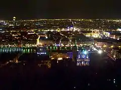 ![]() Lyon during the 2008 Festival of Lights, seen from Fourvière hill. | |