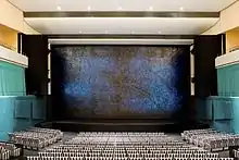 The iron curtain of the Große Saal was designed by the artist Eva Schlegel. It separates the audience from the stage. The size is 20 m width and 10.5 m height. It shows the biggest picture of the country and weighs 14.5 tons.