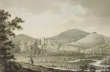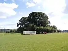An old mansion near Bampton Castle, called Castle Grove, was the residence of the Tristram family,[45] who according to Lysons (1822) probably purchased it from the Bourchiers. A mural monument to John Tristram (1668–1722), last of the family to occupy the estate of Duvale within the parish of Bampton, exists in the parish church.[lower-alpha 6] In 1822, the site of the castle was the property of Robert Lucas, Esq., heir to the Tristram family.[24]