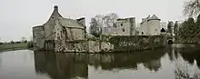 The feudal barony of Eaton Bray in Bedfordshire was an English feudal barony founded in 1205 when the manor of Eaton (from 16th-century "Eaton Bray") was granted by King John to his household steward William I de Cantilupe (d.1239),[4][5] together with many others, including Aston (later Aston Cantlow) in Warwickshire. In 1221[6] Cantilupe built a castle at Eaton, which became the caput of his feudal barony and was described by the monks of nearby Dunstable Priory in the Annals of Dunstable as being "a serious danger to Dunstable and the neighbourhood".[7] The grant was for knight-service of one knight and was in exchange for the manor of Great Coxwell, Berkshire, which had been granted to him previously[8] but the grant was deemed compromised.[9] Eaton had been held at the time of William the Conqueror by the latter's uterine half-brother Odo, Bishop of Bayeux, but later escheated to the crown.