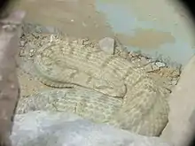 Field's horned viper[4] (Pseudocerastes fieldi) is a species of snake in the family Viperidae.[5] The species is native to the deserts of the Middle East. Like all other vipers, it is venomous. It was previously considered a subspecies of the Persian horned viper (Pseudocerastes persicus). The main differences between this species and the Persian horned viper are in scalation and venom composition.
