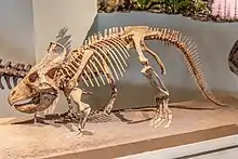 The museum maintains a temporary exhibition program of traveling shows as well as in-house produced topical exhibitions.[13] The professional staff maintains collections of over 24 million specimens and objects that provide the basis for the museum's scientific-research programs.[4][7][14] These collections include the full range of existing biodiversity, gems, meteorites, fossils, and rich anthropological collections and cultural artifacts from around the globe.[7][15][16][17] The museum's library, which contains over 275,000 books, journals, and photo archives focused on biological systematics, evolutionary biology, geology, archaeology, ethnology and material culture, supports the museum's academic-research faculty and exhibit development.[18] The academic faculty and scientific staff engage in field expeditions, in biodiversity and cultural research on every continent, in local and foreign student training, and in stewardship of the rich specimen and artifact collections. They work in close collaboration with public programming exhibitions and education initiatives.[14][19][20][21]