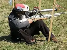 The majority of shots may be taken in any stance, but the seated position is the most popular due to its stability and often the need to see over logs or long grass that would preclude prone shooting. Most competitors carry a small beanbag or cushion to sit on while shooting and they are often used as a protective rest for guns while competitors wait their turn to shoot.