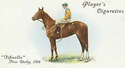 Fifinella (1913–1931) was a British Thoroughbred racehorse and broodmare. In a career that lasted from 1915 until 1917 she ran seven times and won four races. She was the highest-rated British two-year-old of either sex in 1915 and went on to greater success the following season. As a three-year-old in 1916 she won the Derby and Oaks both of which were run that year at Newmarket. She was the sixth and most recent filly to win the Derby.
