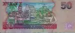$50 | 151 × 67 mm | Red | Wasekaseka; domodomo (canoe masthead) as registration device; Queen Elizabeth II; Fijian coat of arms | Ceremonial presentation of Tabua and Yaqona | 2007[10] | 10 April 2007 | Fijian head and electrotype 50 |