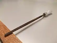 Pinning refers to the clogging of the file teeth with pins, which are material shavings. These pins cause the file to lose its cutting ability and can scratch the workpiece. A file card, which is a brush with metal bristles, is used to clean the file. (The name, "card", is the same as used for the "raising cards" (spiked brushes) used in woolmaking.) Chalk can help prevent pinning.[12]