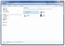 By default, a new user account in Windows 7 contains four libraries, for different file types: Documents, Music, Pictures, and Videos. They are configured to include the user's profile folders for these respective file types, as well as the computer's corresponding Public folders.