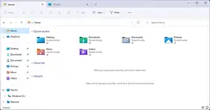 ![]() File Explorer on Windows 11 in Light App Mode showing special folders on Home, with the new command bar and tabs feature. | |