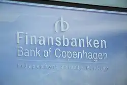 Finansbanken is a Danish bank that was founded on September 27, 1979, with the name "Den Københavnske Bank" (Bank of Copenhagen).[1] The bank's name was later changed to "Finansbanken". It was later sold to Sparekassen Lolland and operates as a subsidiary.[1] It is headquartered in Copenhagen, Denmark.