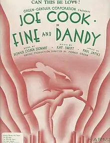 Fine and Dandy is a musical comedy in two acts with a book by Donald Ogden Stewart, music by Kay Swift and lyrics by Paul James. It was produced on Broadway in 1930.