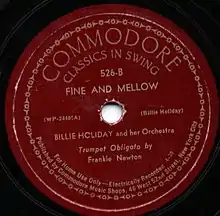 "Fine and Mellow" is a jazz standard written by Billie Holiday,[1] who first recorded it on April 20, 1939 on the Commodore label.[2] It is a blues lamenting the bad treatment of a woman at the hands of "my man".
