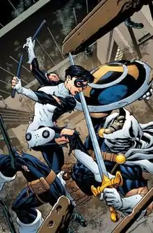 Finesse (Jeanne Foucault) is a fictional character appearing in American comic books published by Marvel Comics. Created by writer Christos Gage and artist Mike McKone, the character made her debut in Avengers Academy #1 (June 2010). The biological daughter of Taskmaster, she inherited his photographic reflexes, allowing her to mimic any fighting style at the cost of long- and short-term memory. Finesse is introduced as a member of the Avengers Academy and later joining A.I.M. and G.I.R.L. as a bodyguard.