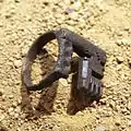 Found in gold or gilded metal from Bronze Age Britain, these small thick incomplete circles are the wrong size and shape to be finger-rings and were probably worn as nose or ear-rings or attached to the hair or clothing.[27] |