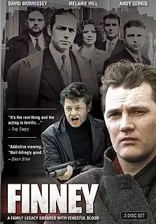 Finney co-starred Christopher Fairbank, Lynn Farleigh, Melanie Hill, Pooky Quesnel, Clive Russell, Andy Serkis and John Woodvine in supporting roles, and follows the struggle for power between two rival crime families - the Finneys and the Simpsons.[2] The series received critical acclaim, including The Times, who commented "It's the real thing. The acting is terrific." and the Daily Star, who called the series "addictive viewing" and commented that it was "nail-bitingly good."[3] The complete series was released on Region 1 DVD in the United States on 28 August 2007;[4] but remains unreleased on Region 2.