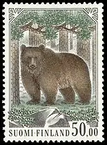 Stamp featuring the brown bear, the national animal.