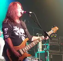 Sometime in 2000, the band parted ways with bassist Perry Richardson due to personal conflict and hired Bruce Waibel, who had played in The Gregg Allman Band for 10 years. Leverty met Waibel in Sarasota, Florida, and was impressed with his bass guitar skills.[11] When the band had an opening for a bassist due to Richardson's departure, Leverty contacted Waibel and asked him to join the band. With Waibel, they recorded their next album, O2, and toured on the Metal Edge 2002 tour with Dokken, Ratt, Warrant, and LA Guns. After the twelve-week tour, Waibel parted ways with the band to spend more time with his family.[11] In 2003, Waibel died unexpectedly at age 45. Guitarist Bill Leverty expressed the band's sadness over his death in a statement shortly after the news broke.[11] Initially, Waibel was replaced by Brazilian Dario Seixas, who played bass on the band's 2003 critically acclaimed album Prime Time, but Seixas left the band shortly after, so the band announced that they were in need of a bass player. Allen McKenzie, who was playing bass for Jani Lane's solo project at the time, sent in his audition tape, and the band agreed that he was the right musician for the job.[10]