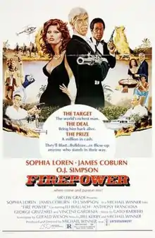 Firepower (aka Fire Power) is a 1979 British thriller film directed by Michael Winner and starring Sophia Loren, James Coburn, O. J. Simpson and Eli Wallach.[3] It was the final film in the career of actor Victor Mature. The film was poorly reviewed by critics who objected to its convoluted plot, though the lead performances and filming locations were generally praised.[4]