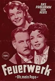 Fireworks (German: Feuerwerk) is a 1954 West German period musical comedy film directed by Kurt Hoffmann and starring Lilli Palmer, Karl Schönböck, and Romy Schneider. Palmer's rendition of the song "O mein Papa" became a major hit.[1] It was Palmer's debut film in her native Germany, having spent many years in exile in Britain, and launched her career as a major star in the country.