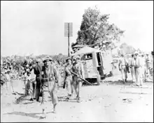 Ben-Gurion invested Yigael Yadin with the responsibility to come up with a plan of offence whose timing was related to the foreseeable evacuation of British forces. This strategy, called Plan Dalet, was readied by March and implemented towards the end of April.[44] A separate plan, Operation Nachshon, was devised to lift the siege of Jerusalem.[45] 1500 men from Haganah's Givati brigade and Palmach's Harel brigade conducted sorties to free up the route to the city between 5 and 20 April. Both sides acted offensively in defiance of the Partition Plan, which foresaw Jerusalem as a corpus separatum, under neither Jewish nor Arab jurisdiction. The Arabs did not accept the Plan, while the Jews were determined to oppose the internationalisation of the city, and secure it as part of the Jewish state.[46] The operation was successful, and enough foodstuffs to last two months were trucked into Jerusalem for distribution to the Jewish population.[47] The success of the operation was assisted by the death of al-Husayni in combat. During this time, and independently of Haganah or the framework of Plan Dalet, irregular fighters from Irgun and Lehi formations massacred a substantial number of Arabs at Deir Yassin, an event that, though publicly deplored and criticised by the principal Jewish authorities, had a deep impact on the morale of the Arab population and contributed to generate the exodus of the Arab population.