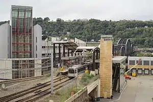 First Avenue station is a station on Pittsburgh Regional Transit's light rail network.[2] The station is part of the light rail's Downtown Pittsburgh free zone, and passengers embarking here may travel for free to any of the other stations within the zone (Steel Plaza, Wood Street, Gateway, North Side and Allegheny).