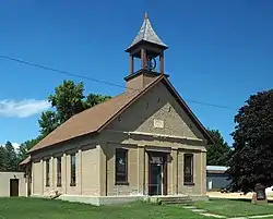 First Baptist Church is a historic church in Garden City, Minnesota, United States. The town, along the Watonwan River, was originally established in 1856 as Fremont. A Baptist congregation was formed in the community in 1858, and eight years later, the church was formally organized. In 1867, the membership split amidst a disagreement between members who wanted a more aggressive evangelical mission and members who wanted the status quo. One of the groups moved ahead with plans to build a church, contracting for the delivery of logs to a nearby sawmill. The sawmill was unable to receive the logs before winter came, though, and the logs were washed away in spring flooding.
