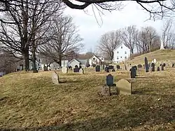 The First Burial Ground or Park Street Burial Ground is a historic cemetery on Park Street near Centre Street in Woburn, Massachusetts. Established c. 1646, it is the city's first and oldest cemetery. It occupies a 1.4-acre (0.57 ha) parcel at the corner of Park and Centre Streets near Woburn Square. Most of the burials took place before 1794, and are marked by slate headstones. The last documented burial took place in 1903. In a manner typical of early colonial cemeteries, there is no formal circulation pattern, and graves are not laid out in any formal, organized manner.[2]