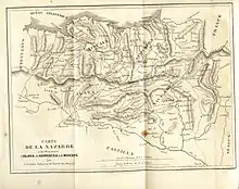 The main Carlist forces were split in three geographically distinct armies where Carlist support was strongest: 'North', 'Maestrazgo', and 'Catalonia', which by and large operated independently from each other.[2] Several independent, but nominally Carlist bands also waged a guerrilla war in mountain areas as far south as La Mancha and Andalusia, but were derided as bandoleros (bandits) by the Christino liberal government.[3][4]