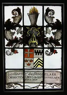 The church itself was formally organized in 1642. A minister was called, elders and deacons were elected.[5] Services were first held in the manor house of the local patroon, the Van Rensselaer family, then a converted warehouse and a log cabin.[4] In 1656 the first dedicated church building, was built on the property of Jan Coster Van Auken adjoining his shop at what is now the steam boat landing, a stone structure was erected.[5] It was referred to as "the blockhouse" because it doubled as a defensive structure in case of attack.[6] The weathervane from that building graced the church's roof for many years; today it is in the church's archives, with a copy in its place.[4]