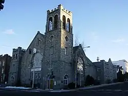 The current building was built in 1890 in a Richardsonian Romanesque style and enlarged in 1927 to include larger towers and a Sunday School. Soon afterwards, the congregation merged with Westminster Presbyterian Church.[2] The building was added to the National Register of Historic Places in 1978.