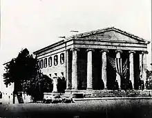 The First National Bank is a historic bank building in Huntsville, Alabama. The temple-form Greek Revival structure was built in 1835–1836. Designed by locally famous architect George Steele, it occupies a prominent position, facing the courthouse square and sitting on a bluff directly above the Big Spring. It was the longest-serving bank building in Alabama, operating until 2010 when Regions Bank moved their downtown branch to a new location. The building was listed on the National Register of Historic Places in 1974.[1]