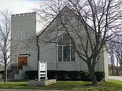 First Presbyterian Church of Ontario Center is a historic Presbyterian church located at Ontario Center in Wayne County, New York. It was built in 1914 and is a Tudor Revival style concrete block church cast to resemble rusticated masonry. It is roughly square in plan and topped by a cross gable roof. The front facade features a massive square corner tower capped with a crenelated parapet.[2]