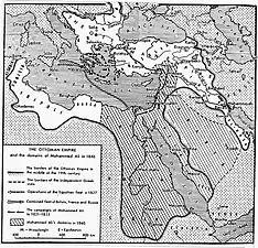 The then-ongoing Tanzimat reforms of Mahmud II had experienced significant difficulties in adopting the innovative military methods of conscription and mass drill then being implemented in European armies, but Muhammad Ali had managed to adopt both.[1][4] Ibrahim's overwhelming success cannot be attributed only to modern organization however. His officers had significantly more experience than their Ottoman counterparts, having borne the brunt of fighting in the Empire's two most recent major wars against the Wahhabi and Greek rebellions, and he attracted significant local support to his cause by calling his campaign one for "liberation from the Turkish yoke."[4] With the provinces of Greater Syria under his control, the Egyptian army continued their campaign into Anatolia in late 1832.[7]