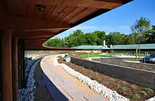 In 1945, the Society elected to sell their original buildings after receiving a substantial offer for the property originally located downtown Madison, WI.[4] The following year, after much debate, the Society commissioned Frank Lloyd Wright to design the new Meeting House.[4] Four acres of land in Shorewood Hills, surrounded by few structures and overlooking the University of Wisconsin agricultural fields, was purchased as the new site.[4] The new building opened in 1951.[4] Today, the University of Wisconsin hospital and a busy University Avenue surround the Meeting House.