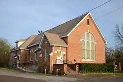 The First United Methodist Church is a historic church east of the junction of 2nd Street and 5th Avenue in Lockesburg, Arkansas. It is a T-shaped structure, with a single-story nave and an asymmetrical 2+1⁄2-story cross section at the rear of the building. It is framed in wood and clad in brick. Built in 1926, it is the fourth church building to serve a congregation formally established in 1872, and is a particularly well-preserved example of a Gothic Revival structure with Classical and Medieval Revival elements. This distinctive combination of elements is rare in Arkansas church architecture.[2]
