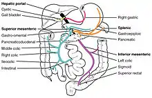 Illustration showing the hepatic portal vein system