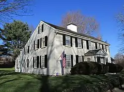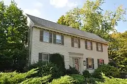 Sherborn | c.1674 | Joseph Morse possibly built the core of this house with his wife sometime around 1674.[80] The residence served as Sherborn's first meetinghouse until a formal church was built in the 1680s. Afterwards, the house fell into the ownership of the Barber family by 1753 and remained under their ownership until the late 19th century.[80] Under their care the house was enlarged in 1814, and was remodeled in Greek Revival-style surface treatments ca.1835.[80] According to the Massachusetts Historical Commission, the home still retains some First Period elements.[80] |