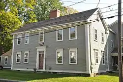 Ipswich | c.1671 | Deacon Thomas Knowlton built a 2.5 story end gable house with central chimney on South Main street c.1671.[56] The house still retains its 17th century core with original frame, but was altered on the exterior c.1775. These alterations gave the residence "high quality" Georgian styling which include carved modillions.[57] During this time the home was owned by a Tory named John Calef, who appears in Paul Revere's broadside "A warm place: hell".[57] The residence was later moved to its present location in 1777 by the subsequent owner.[57] |