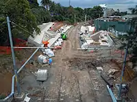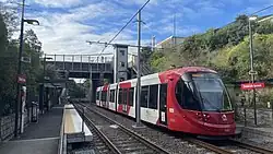 Work to upgrade the track and remove the overhead wiring began in August 2010.[10] The project received planning approval in February 2011.[11] The extension was originally scheduled to open in 2012, but in September 2011 the newly elected O'Farrell Government announced that it would not open until 2014, and that the cost had risen from $120 million to $176 million. The Greenway walking and cycling path which was to run alongside much of the route was deferred. The new government blamed hasty planning by their predecessor for the delay and cost overruns, and the lack of an active transport masterplan for the deferral of the Greenway.[12]