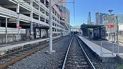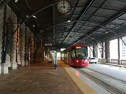 The Central Grand Concourse stop (formerly Central) is the eastern terminus of the line. It serves Central railway station and is located on the first floor, parallel to, but above, Eddy Avenue.[61] The stop connects to the Grand Concourse, Central station's main waiting area and the departure hall for medium and long-distance train services.
