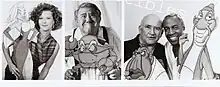![]() Fish Police characters and their voice actors from left to right: Angel Jones voiced by JoBeth Williams, Crabby voiced by Buddy Hackett, Chief Abalone voiced by Ed Asner, and Det. Catfish voiced by Robert Guillaume | |