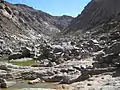The Fish River canyon consists of an upper canyon, where river erosion was inhibited by hard gneiss bedrocks, and a lower canyon formed after erosion had finally worn through the gneisses. Both parts have been declared a national monument in 1962.[3]