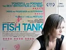 Fish Tank is a 2009 British drama film written and directed by Andrea Arnold. The film is about Mia, a volatile and socially isolated 15-year-old, and her relationship with her mother's new boyfriend. Fish Tank was well-received and won the Jury Prize at the 2009 Cannes Film Festival.[3] It also won the 2010 BAFTA for Best British Film. It was included in the BBC's The 21st Century's 100 greatest films (compiled in 2016), ranking at no. 65 on the list.[4]