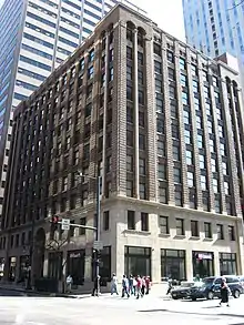The Fisher brothers were unusually innovative,[5] and the firm's buildings are in a variety of styles. The Railway Exchange Addition of 1909/13 and the connected Railway Exchange New Building of 1937 (now the Hotel Monaco) in downtown Denver show contrasting styles by the same firm. The New Building, by Fisher, Fisher & Hubbell, is one of Denver's best Art Moderne works,[6] although the architects denied at the time that it was "modernistic".[7]